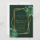 Le design présente un élément floral imprimé de couleur dans les tons vert émeraude et or. Textures de toile verte avec cadre géométrique faux or et fleurs de pivoines avec script de calligraphie or ou écriture de type. Idéal pour vos célébrations mariages !
