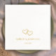 Entwerfen Sie stilvolle, individuelle Hochzeitsnapkins, indem Sie den Namen des Paares und das Hochzeitsdatum zu diesen weißen Cocktail-Servietten hinzufügen. Einfache, elegante Schrift in einer bräunlichen goldenen Farbe kann zu jedem Text bearbeitet werden. Der goldene Ton ist Imitat Gold, nicht echte Folie. Zwei handgezeichnete goldfarbene, bräunliche, verflochtene Herzen betonen das Zentrum oder können auf Wunsch gelöscht werden. Die Paare Namen und das Datum unten in goldfarbenen modernen Drehbuch ist editierbar. Das würde auf dem Hochzeitstisch mit der passenden, steinigen Weingläser großartig aussehen. Einfache minimalistische und dennoch romantische Servietten für Hochzeiten, Jubiläen oder Verlobungen.
