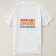 Schreiben Sie eine kurze Beschreibung des T - Shirt-Designs für das Bild von "Courage Conquers Challenges".