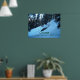 Skierstart von einer Klippe im Wald