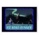Image d'un jogger poursuivi par une orignal pendant qu'il courait dans une nuit d'hiver sombre. Les aurores boréales brillent au-dessus. Essayez de courir à moins 25 degrés, ou peut-être qu'il est un peu plus chaud mais il ya un mauvais refroidissement éolien. Et comme l'hiver n'a qu'une seule fois des couleurs, noir et blanc, ces orignaux noirs sont très difficiles à voir. Faites savoir à tout le monde que vous êtes l'un des petits groupes de coureurs d'élite qui ne laissent pas froid, noir, neige et glace, ou l'orignal passer une mauvaise journée, vous empêcher de parcourir ces kilomètres sur la route.