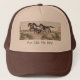Ce casquette comporte des illustrations originales de trois chevaux de peinture galopant à travers un paysage de désert par l'artiste Jayne Wilson. Les amants de cheval apprécieront ce casquette.