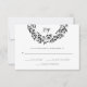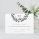 Ce design mariage moderne et rustique présente une couronne botanique noire sur un arrière - plan blanc. Le dos de la carte RSVP est un gris souple de coordination.