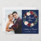 Carte de remerciement de mariage avec couronne florale aquarelle burgundy marsala bleu - Dos bleu