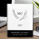 Monogramme noir et blanc Wreath Annuel Planner... L'avant de notre planificateur classique en noir et blanc affiche le logo d'une élégante couronne botanique qui borde vos deux initiales monogrammes à l'encre noire... le tout sur un arrière - plan blanc. Votre nom et votre titre (ou nom de l'entreprise) apparaissent en encre blanche sur un rectangle noir bordant le bas du planificateur, donnant une structure autoritaire pour équilibrer la délicate couronne feuillue. Tout le texte peut être facilement révisé sur le modèle de personnalisation.