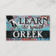 Art coloré Apprendre à parler carte de visite grec en turquoise, aqua, rouge, jaune. Carte de visite de l'enseignement de langue grecque.