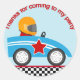 Cette voiture de course sur un autocollant peut être customisée en tapant le numéro que vous voulez. Il y a aussi de la place pour ajouter du texte. Cela s'ajouterait au texte de remerciement.