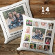 Create your own photo collage throw pillow with 14 of your favorite pictures on a black background.Personalize with family name and established date.