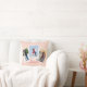 A collage of three photos of lovers kissing, partly overlapping, with retro white borders, and in the lower part, partly overlapping with the photos, the word "love" written in a red script. The background is blush pink.