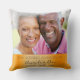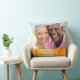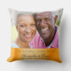 Un coussin en cadeau, célébrant un 50e anniversaire de mariage d'or. Un élégant arrière - plan moderne faux dégradé d'or. Personnalisez et ajoutez votre propre photo de haute qualité du couple heureux. Texte : Les noms sont écrits avec un script de style moderne et gris foncé. Tempates pour les noms et une date.