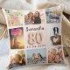 Un cadeau unique pour un 80ème anniversaire, célébrant sa vie avec un collage de 8 de vos propres photos, photos. Personnalisez et ajoutez son nom et une date. Un or rose chic, arrière - plan rose vif. Le nom est écrit avec un script de style moderne écrit à la main, numéro 80 avec une police de style ballon.