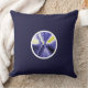 Un oreiller bleu foncé moderne avec art fractal abstrait dans un cadre rond blanc.