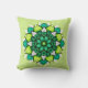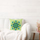 Coussin de mandala floral avec une fleur verte créée à partir d'une encre et aquarelle dessin botanique abstrait.