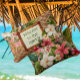 Voici une coussin sur l'île avec des fleurs tropicales exotiques contre un faux arrière - plan en rotin. Customisez-le avec un message spécial ou le nom de votre choix. Amoureux pour vous-même ou une plage tropicale amoureux ami ou membre de la famille. Disponible en 3 tailles :