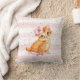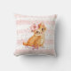 Un simple coussin monogramme avec des rayures d'aquarelle rose, une parties scintillant d'or rose pétillante et une adorable illustration de chaton orange.