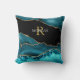 Coussin Agate noire sarcelle Or, monogramme or nom blanc