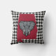 A herringbone background with the state of Alabama and an elephant. Crimson and gray colors on black and white herringbone.