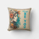 Oreiller à jet Vintage rétro. Un coussin de canapé avec une femelle portant des fleurs dans ses cheveux, le texte dit "Soyez toujours vous".