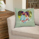 Un design moderne et élégant d'oreiller personnalisé présente une photo préférée dans une grande forme de cœur avec une superposition de typographie blanche minimale "Amour" qui comprend des détails de fioriture et de cœur. La couleur de fond vert laurier feuillu peut être modifiée. Une idée de cadeau unique pour un jeune couple marié ou pour votre bien-aimé à la Saint-Valentin !
