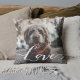 Coussin photo personnalisé avec le mot "amour" dans une police de script élégante.
