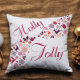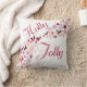 Oreiller de Noël mignon avec une bannière de joie de Noël et les mots Holly Jolly sur le devant. Dos coordonné, ajoutez le nom de votre famille, votre propre message ou laissez vide. Voir toute notre décoration de vacances dans notre magasin Zazzle !