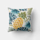 Coussin Ananas doré bleu palmier feuille feuillage blanc