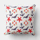 L'oreiller à lancer est montré dans une jolie marine et blanc multicolore avec une empreinte d'ancre. Customisez cet objet ou achetez tel quel.