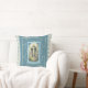 Bleu d'Aqua avec la conception blanche cassée de dentelle sur le coussin.