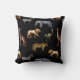 Un coussin à thème africain avec un motif d'éléphants, de zèbres, d'autruches, de léopards, de girafes et de lions sur un arrière - plan noir. Ce coussin ferait un grand ajout contemporain à votre décor de maison, ou faire un grand cadeau de ménage.