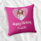 Un arrière - plan rose chaud tendance. Personnalisez et ajoutez votre propre photo de la fille d'anniversaire et son nom. Cadre en forme de coeur. Le nom est écrit avec un script de style moderne écrit à la main.
