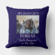 This keepsake pillow celebrates the joy of companionship and faith. The front features a centered pet photo framed by their nickname above and name below, with a trail of light blue pawprints rising toward the image. The phrase “God’s pawprints in my life” completes the tribute. On the reverse side, a deep navy background carries the touching words “You are my answered prayer,” offering comfort and a reminder of the blessing pets bring. A meaningful accent for home and heart.