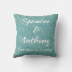 Un bel oreiller à lancer pour se souvenir de votre journée spéciale. Cet oreiller est recouvert des noms de votre choix et motif de votre belle invitation et autres produits mariages. Un coussin de ce design ferait un cadeau très spécial, un cadeau douche, une fête de bachelorette, un cadeau mariage etc.