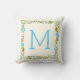 Coussin Aqua moderne et bordure fleurie jaune et monogramm