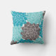 Coussin Aqua Teal et collage gris de fleur de graphite