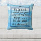 Le verset sur ce coussin dit : RETRAITÉ J'ai travaillé pendant des années et payé mes cotisations MAINTENANT je ferai ce que je choisis. Le joli arrière - plan d'aquarelle est une belle combinaison de bleus, y compris le ciel, bébé, et Carolina. Les différentes nuances de bleu traversent le coussin par vagues abstraites. Le verset se trouve dans un cadre bleu, avec deux fleurs douces de marguerite. Un défilement du coeur est au-dessus du verset encadré et un simple séparateur de ligne et de point est en dessous. L'oeuvre est la même à l'avant et à l'arrière du coussin. Cela ferait un merveilleux cadeau de retraite heureuse.