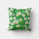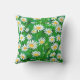 Jetez l'oreiller dans une aquarelle motif de marguerites blanches aux centres jaunes dorés, sur un arrière - plan vert pâle