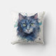 Portrait d'aquarelle d'un chat, avec des bleus calmes aux nuances subtiles de violet et de vert. Le chat est centré dans la peinture avec son regard profond et les yeux verts proéminents, entouré d'un effet éclatant, ajoutant une sensation vivante et fluide à l'oeuvre. Parfait comme un objet décoratif ou un design d'inspiration animale.