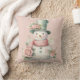 Arrière - plan pastel rose doux avec moelleux bonhomme de neige aquarelle aux couleurs pastel. Des fleurs joliment coordonnées embellissent le design de cet adorable coussin. Un cadeau de vacances parfait pour cette personne difficile à acheter dans votre liste.