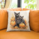 Coussin Aquarelle noir Chat et chatons Citrouille
