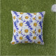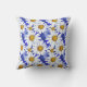 Coussin dans une aquarelle motif de marguerites blanches aux centres jaunes dorés, sur un arrière - plan dans les tons bleu denim