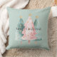 Coussin Arbres de Noël verts roses étoiles d'or