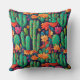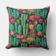 Cactus vert et fleurs aux couleurs vives sur un arrière - plan bleu foncé pour le ventilateur du sud-ouest. Éclairez votre maison avec ce motif transparent qui fonctionnera sur n'importe quelle taille ou forme de coussin.