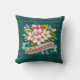 Arkansas's state flower, the apple blossoms, are depicted here in a "faux" embroidered emblem digital graphic with "Arkansas" text on ribbon banner. Background is a teal vintage harlequin pattern.