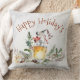 Mignonne, scène de Noël. Arrière - plan blanc moelleux avec feuillage de Noël, et arrangement de fleurs, avec lumière de Noël, et un oiseau.