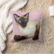 Scellez le chat siamois de point avec ses yeux bleus étendus avec sa patte prolongée sur un arrière - plan couvrant rose.