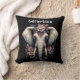 Un éléphant au design complexe se dresse majestueusement, orné de beaux motifs floraux. La lumière douce de l'aube renforce son élégance, symbolisant la force et la beauté dans la nature.