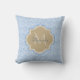 Coussin Art Déco Bleu clair Balances de poisson Tan Monogr