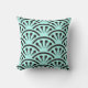 Coordonné pour aller avec HoMeArts horloge murale coupée de "art déco", ce coussin mou et confortable comporte les mêmes coquilles japonaises d'art déco Wallpaper la conception des années 1920 dans le noir sur un arrière - plan d'Aqua.