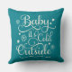 La conception saisonnière de coussin comprend le script "Baby it's Cold Outside" avec des accents d'étoile et de flocon de neige. Couleur turquoise bleu / vert arrière - plan peut être customisé pour coordonner avec votre décor de vacances.