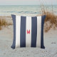Coussin Bande de cabane marine et monogramme rouge personn